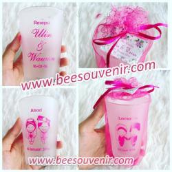 Souvenir Gelas Medium- min order 200 pcs- kemas plastik + kut- bisa request warna doff- bis arequest warna gambarInfo/order :Sms / wa : 0896 0683 0693Line : wulanjatiningrum